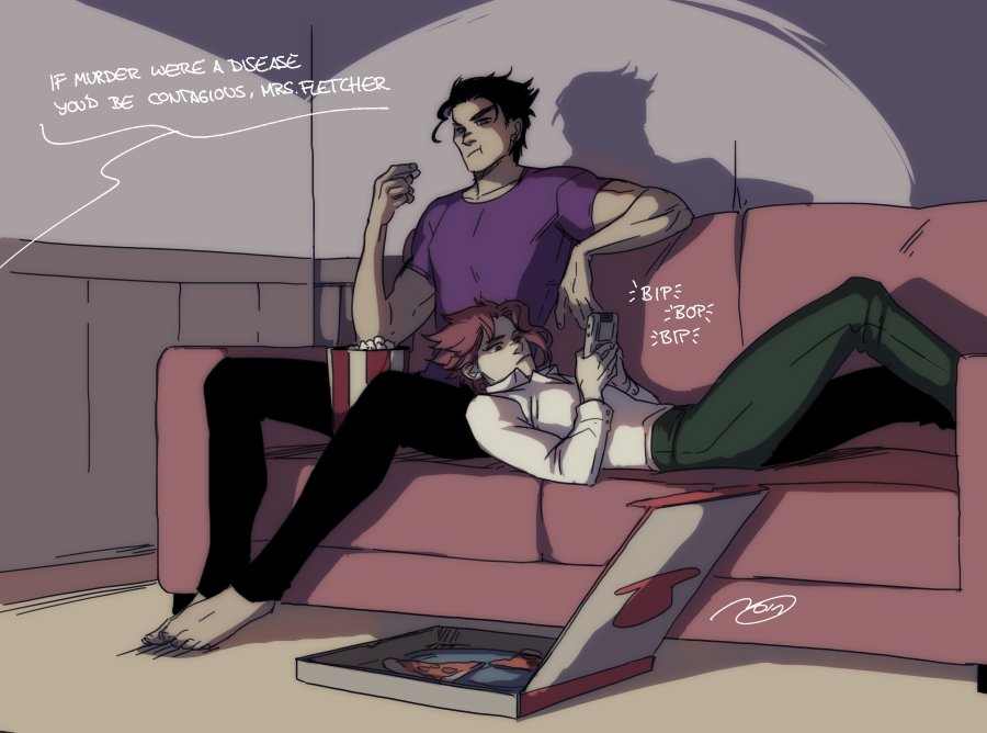 Jotaro said he was a fan of “Colombo” so I bet he was a fan of “Murder she wrote” too and binge-watches crime shows while Kakyoin plays Super Mario Land.